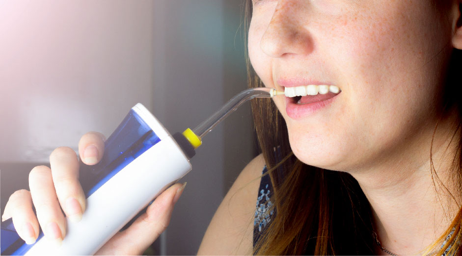 En prótesis con zonas de mayor dificultad de acceso o en pacientes menos habilidosos recomendamos el uso de irrigadores dentales, que utilizan agua a presión y facilitan en gran medida conseguir una correcta higiene.